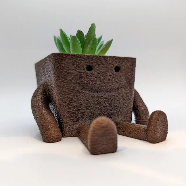 You cannot look at this planter and not smile. It is so darn adorable! This will lighten the mood at any office or home. It does contain a hole for drainage. If you wish to not have the hole let me know. This is made from PLA which is eco friendly (it's made from plant based materials).